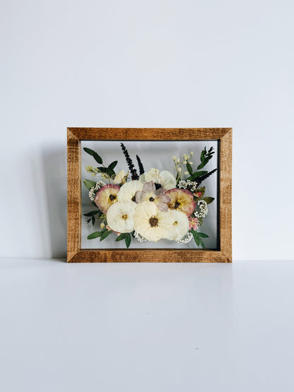 Please note: Our preservation techniques are 100% all-natural, we do not use any preservatives or color enhancements. This can mean that your flowers are likely to change colors during the process and that is how Mother Nature intended it to be. We do have restrictions on all white bouquet orders and you can read more about that here. Pressed flowers aren't perfect, but the memories that they hold are. ?